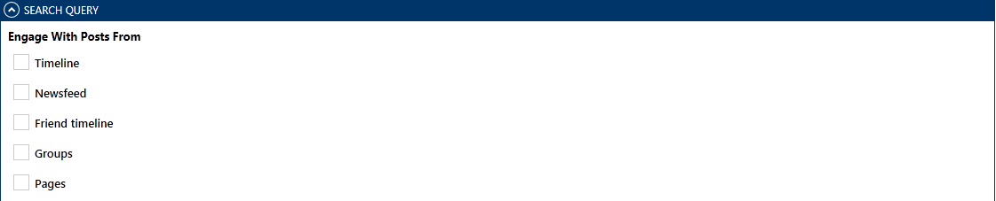 يمنحك Socinator إمكانية تصفية المشاركات استنادًا إلى عوامل التصفية المطلوبة حتى تتفاعل حساباتك مع المستخدمين المستهدفين بشكل خاص.أدناه هي مرشحات المستخدمين المتاحة لالفيسبوك.نطاقات المشاركات التي تحتوي على الإعجابات بين X و Y : إذا تم تحديد هذا الفلتر ، فسيقوم Socinator بتنفيذ الإجراءات فقط مع المشاركات التي لها إعجابات في نطاق معين.