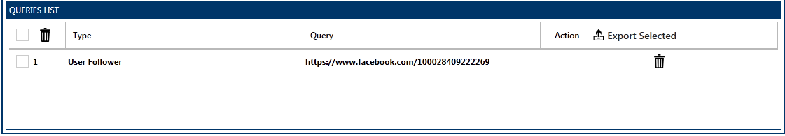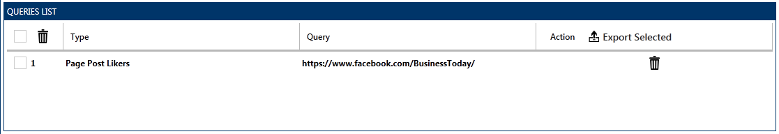 Fanpage Likers: مع هذا النوع من الاستعلامات ، يبحث البرنامج عن مستخدمين باستخدام عناوين url لصفحة المعجبين المدخلة ، ويحصل على المستخدمين الذين أعجبوا بهذه الصفحة. يجب عليك وضع عناوين URL للصفحات فقط.