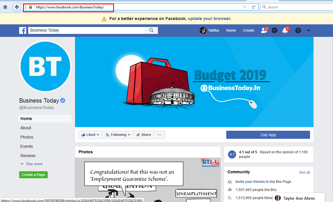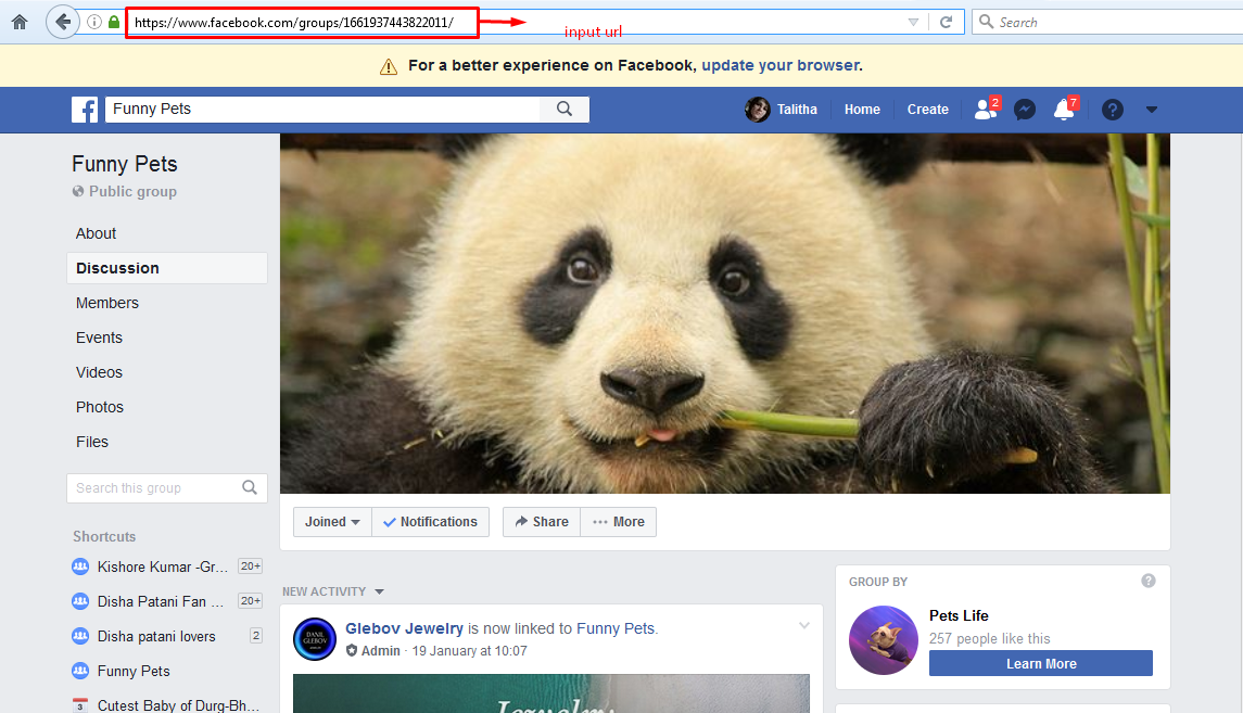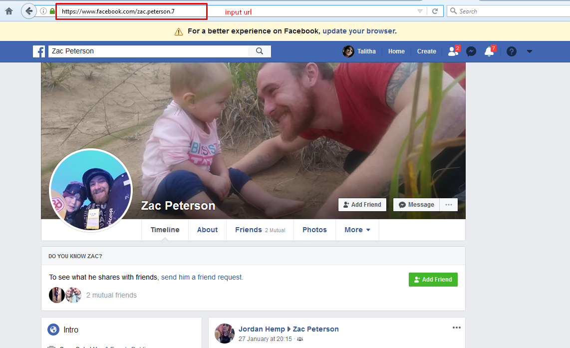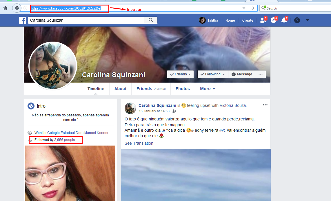 على سبيل المثال ، تحتاج إلى إدخال عنوان url الذي يظهر في الصورة أدناه Quary Facebook: