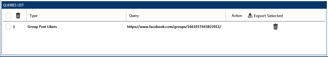 Group post: مع هذا النوع من الاستعلام ، يبحث البرنامج عن المستخدمين الذين لديهم عناوين url للمجموعة التي تم إدخالها ، ويحصل على المستخدمين الذين يعجبهم في منشورات المجموعة. تحتاج إلى وضع عناوين URL للمجموعات فقط Quary Facebook