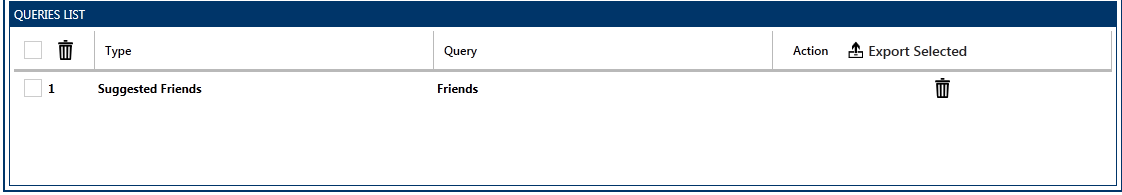 Suggested friends: مع هذا النوع من الاستعلامات ، يبحث البرنامج في جميع أصدقاء facebook المقترحين. ستحتاج إلى وضع الأصدقاء فقط في Query.