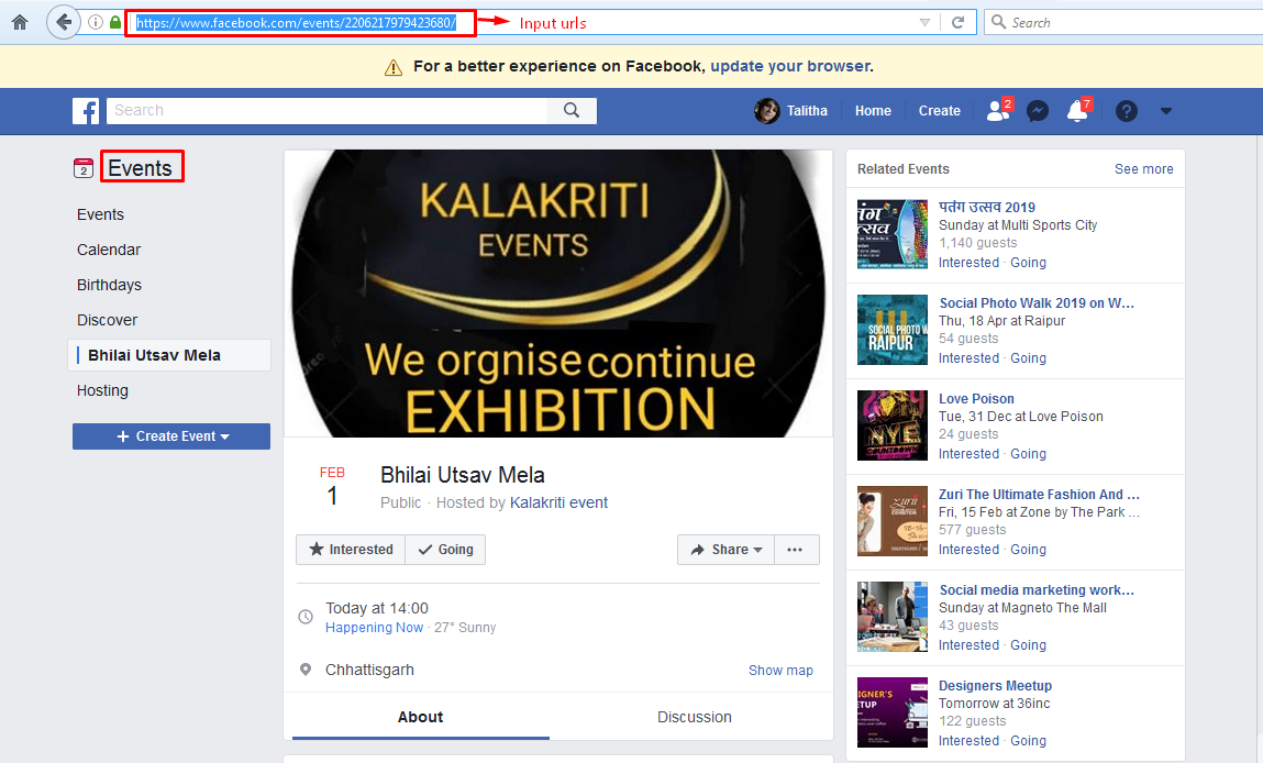 Event Url: مع هذا النوع من الاستعلام ، يبحث البرنامج عن المستخدمين الذين لديهم عناوين url للأحداث المدخلة ، ويحصل على المستخدمين المهتمين بهذا الحدث. تحتاج إلى وضع عناوين url الخاصة بالحدث فقط.