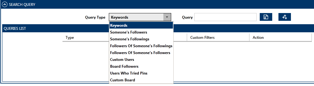 تتيح هذه الميزة Socinator لأتمتة متابعة المستخدمين على Pinterest. يسمح بالبحث عن