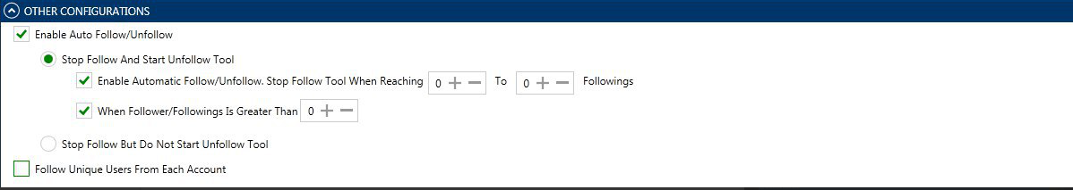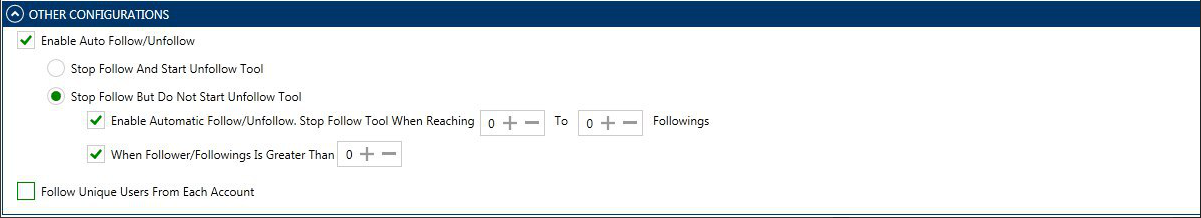 - اتبع المستخدمين الفريدين من كل حساب: – إذا تم تحديد هذا الفلتر ، فسوف يبدأ Socinator في تنفيذ إجراءات المتابعة باتباع المستخدمين الفريدين.